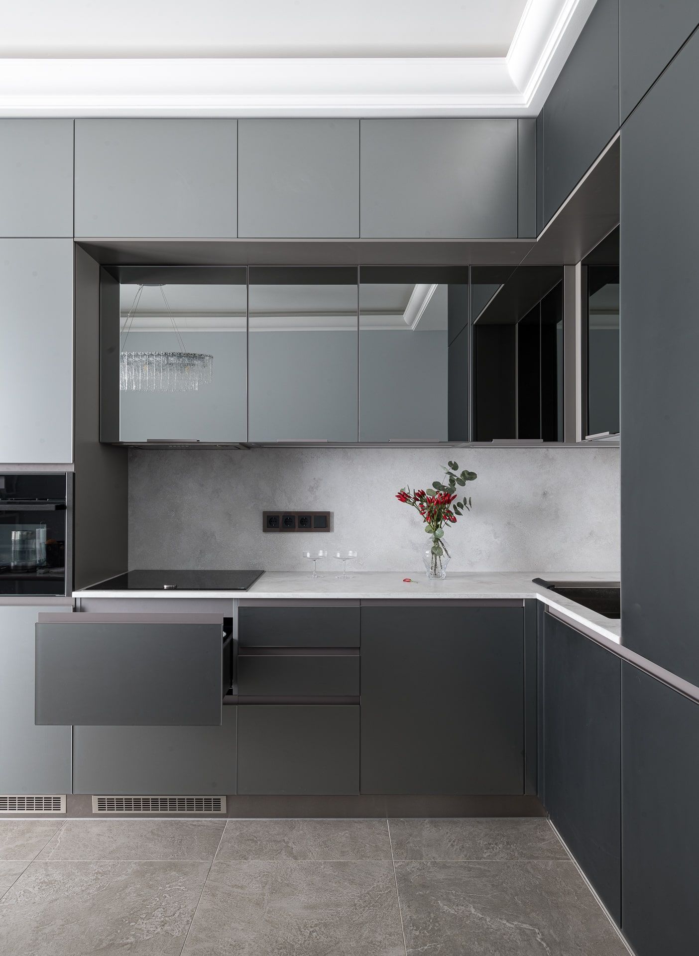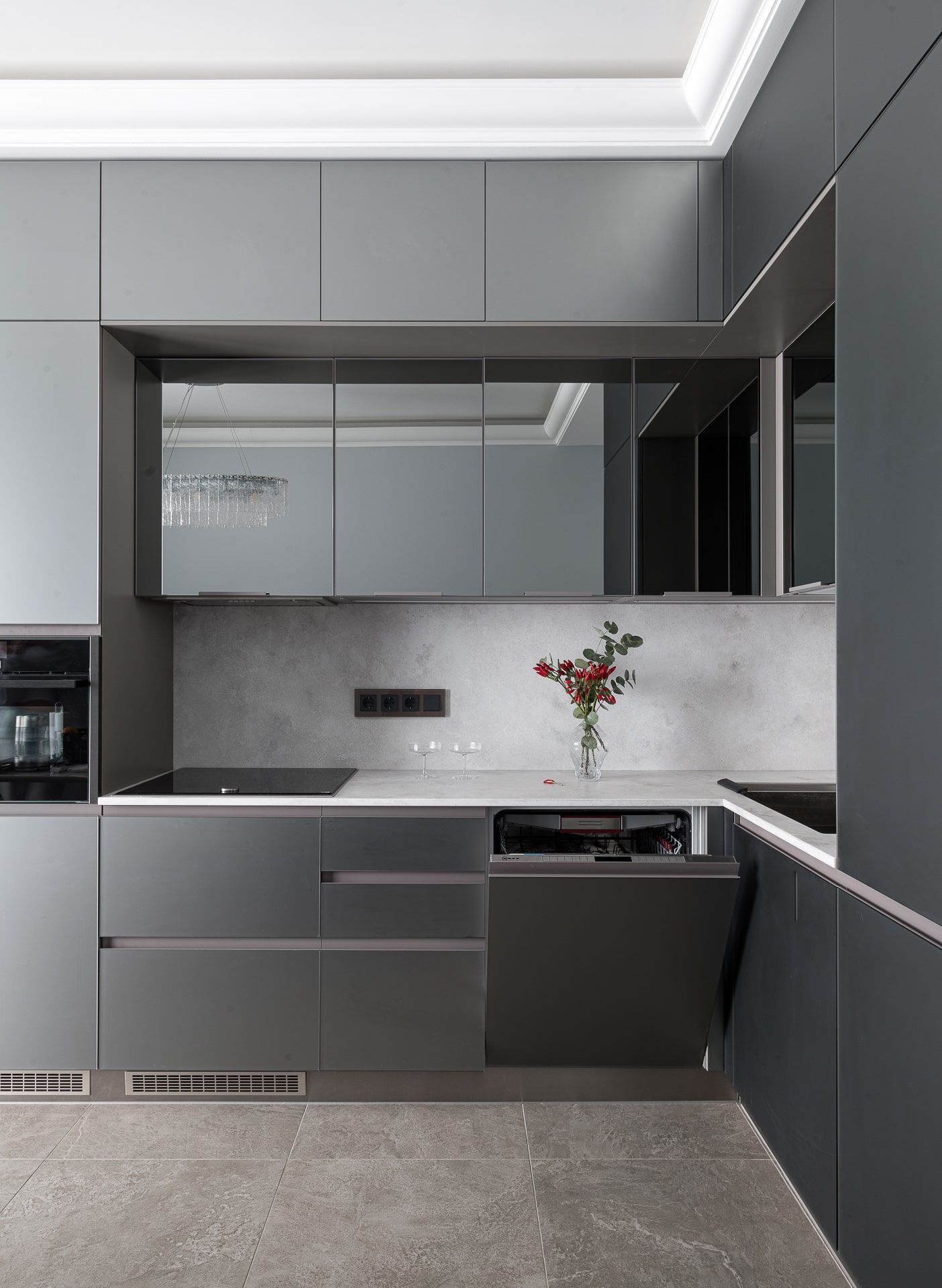Кухня Vitrum - стекло Мателак Серебристо-серый