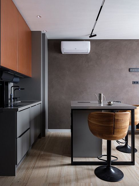Всё пространство вокруг кухни подбиралось для функционального и уютного времяпровождения. Несмотря на избирательный вкус клиента, мы полностью сошлись во взглядах и проект был выполнен легко, с большой любовью!